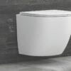 Vaso sospeso della serie Milos Opaco Bianco. Il vaso è completo di coperchio termodour con chiusura Soft Close Slim.